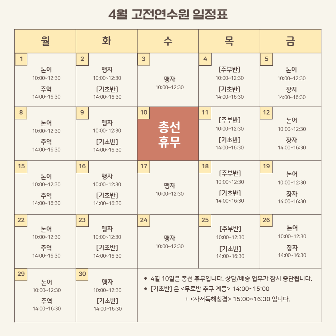 [고전연수원] 2024년 4월 일정 안내