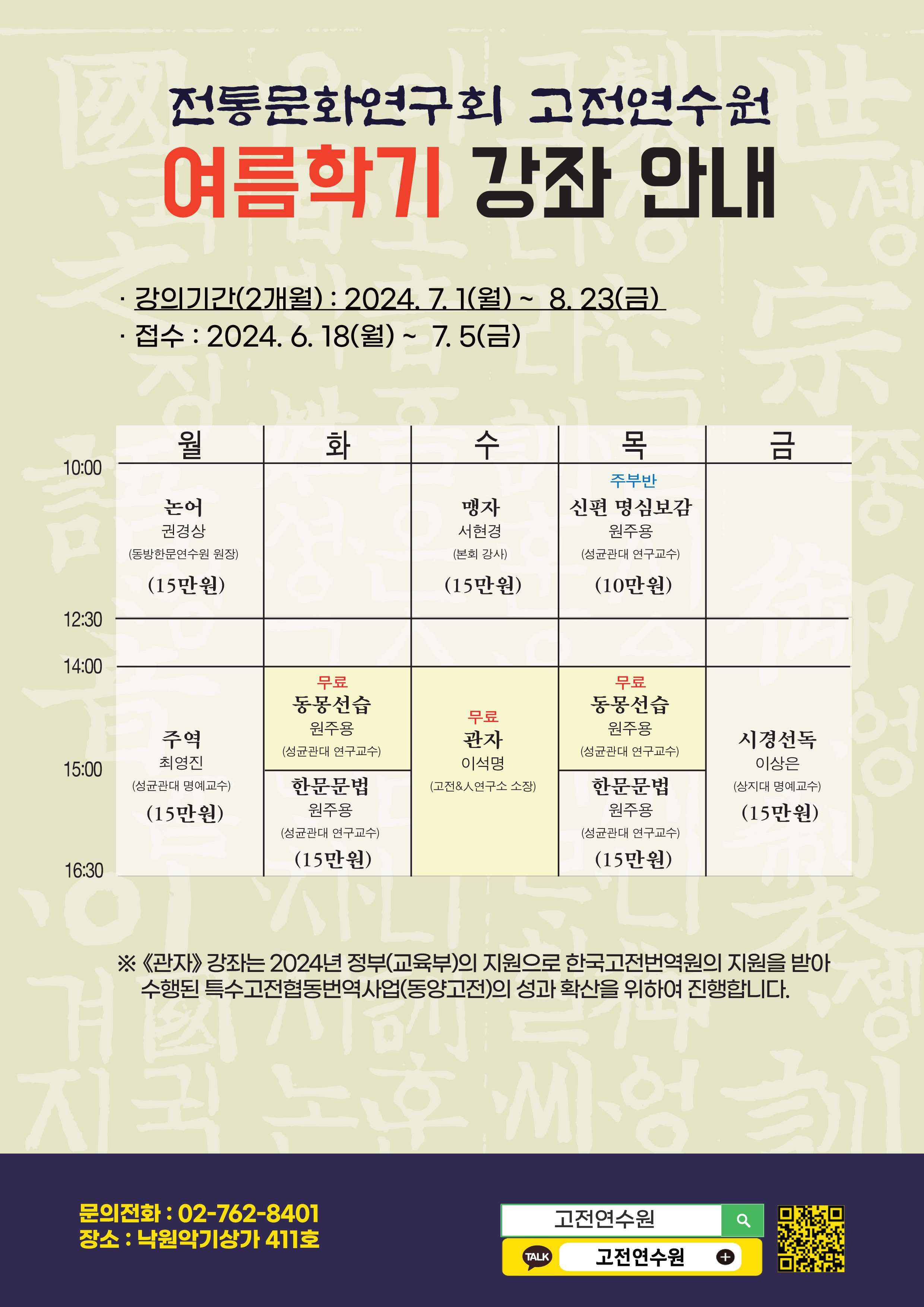 ※문의: 전통문화연구회 고전연수원 : 02)762-8401